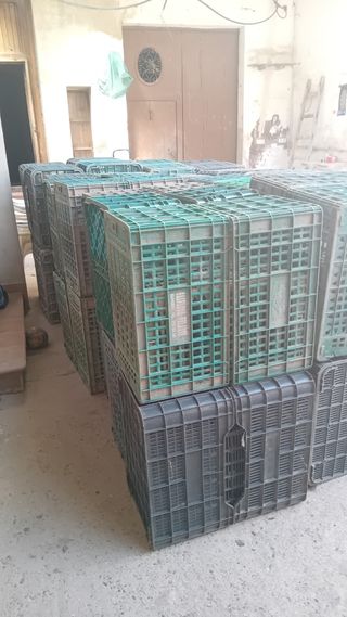 Lote de cajones de plástico de estilo europeo, ideales para almacenamiento y transporte. - Fabricados en plástico resistente. - Diseño apilable para optimizar espacio. - Tienen polvo por estar guardados en casa de campo Disponibilidad de mas de 200 cajones (precio negociable según cantidad)