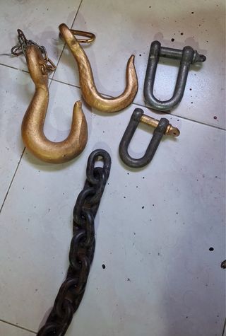 Conjunto de cadena con accesorios para carga. puedes usarlo para lo que tengas en mente, como por ejemplo, cadena de seguridad, remolque, etc. - Cadena de eslabones metálicos. - Dos ganchos de gran tamaño. - Dos grilletes de metal.