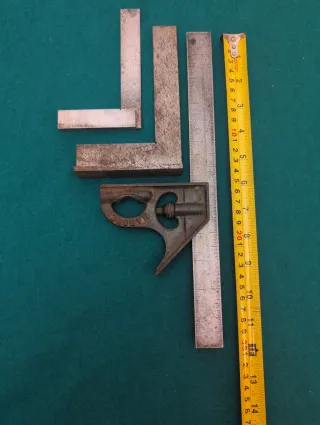 Conjunto de herramientas de medición para carpintería y bricolaje. - Incluye varias escuadras de precisión. - Se incluye una escuadra combinada