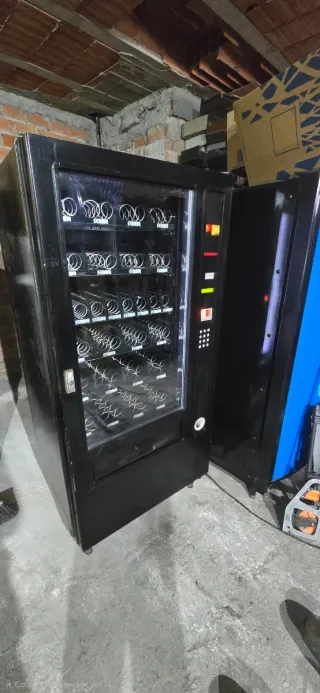 Máquina expendedora de snacks y bebidas, ideal para negocios o espacios comunes. Cuenta con múltiples compartimentos para una gran variedad de productos. - Diseño moderno y funcional. - Iluminación LED interior. - Panel de control intuitivo. - Compartimento para monedas y devoluciones.