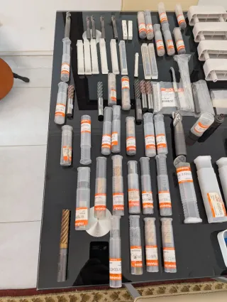 Conjunto variado de herramientas y accesorios. - Diversas brocas y puntas. - Componentes de sujeción. - Manuales y folletos informativos. - Emuge franken - Guardado varios años sin usar - La mayoría sin estrenar - No envío,pesan más de 40 kilos