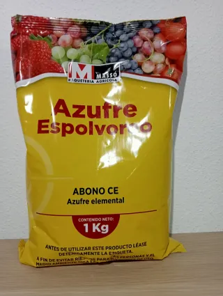 Abono CE de azufre elemental en polvo de la marca MASSO. - Contenido neto: 1 Kg. - Paquetería agrícola.