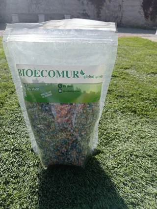Fertilizante biológico concentrado Bioecomur. - Formato en polvo - Contiene cacito de dosificación. - Ideal para agricultura ecológica. - Enriquecido con minerales. - Estupendo estimulador de raíz. - No apto para abonadoras.
