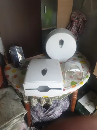 Lote de accesorios industriales. - Dispensador de papel grande. - Dispensador de jabón metálico. - Dispensador de papel pequeño.