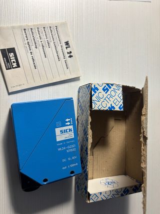 Barrera óptica de reflexión SICK, modelo WL24-G2321. - Fabricado en Alemania. - Voltaje de operación: 10-30V DC. - Corriente de salida: <= 100mA.