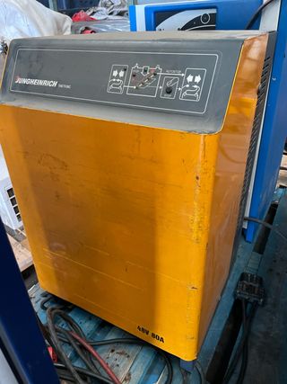 Cargador industrial Jungheinrich Timetronic D400 G 48/80 B-ET. Salida 48 V 80 A, válido para baterías plomo-ácido hasta 530 Ah (24 celdas). Entrada 400 V trifásica. Funcionamiento automático, robusto y fiable. Procedente de carretilla, usado, estado correcto (ver fotos). Ideal para Jungheinrich y compatibles a 48 V.