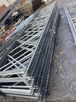 Se venden 14 bastidores metálicos para estanterías de rack vic Tipo mecalux Precio por unidad - Altura de 4 metros. - Ancho de 1 metro. - Estructura robusta de metal.