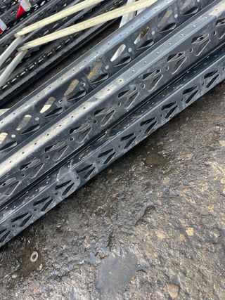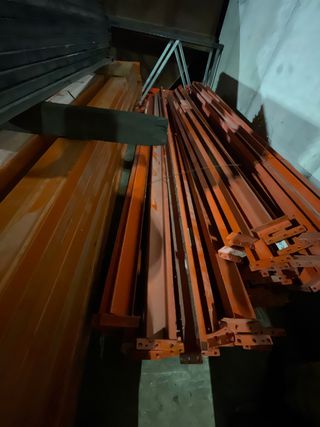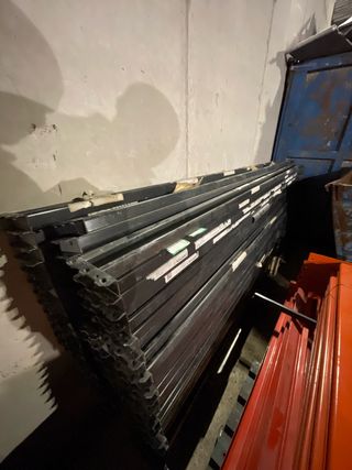 Se venden 3 bastidores para gran carga, ideales para almacenamiento industrial o de gran volumen. Son robustos y de fácil montaje. Bastidores - Altura: 4.5 metros - Ancho: 1 metro A 45€ unidad Largueros 9 de 1,95 m largo a 10€ unidad Largueros 4 gran carga de 3.30 m largo x 13 cm ancho a 15€ unidad