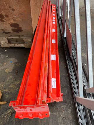 Se venden 30 largueros de la marca Mecalux, ideales para estanterías industriales o de almacén. Precio por unidad - Medidas: 3,30 metros de largo y 15 cm de ancho. - Color naranja. - Fabricados en metal resistente.