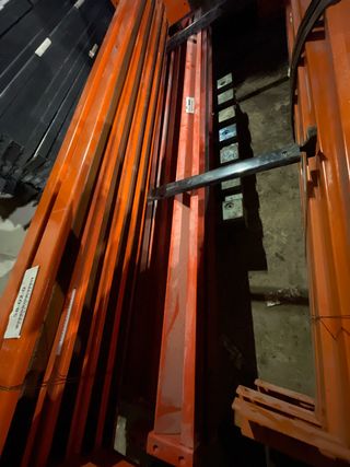 Se venden 28 largueros para rack de color naranja. Precio por unidad - Longitud de 2,70 metros cada uno. - Ideales para sistemas de almacenamiento industrial.