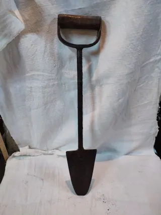Herramienta de jardinería antigua con mango en forma de D. - Pala de metal con mango de hierro - Diseño robusto y duradero.