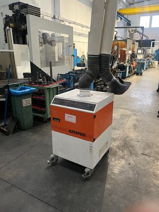Extractor de humos KEMPER con ruedas. - Color naranja y blanco. - Dos tubos flexibles de extracción.
