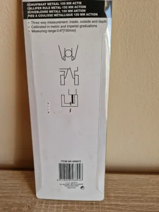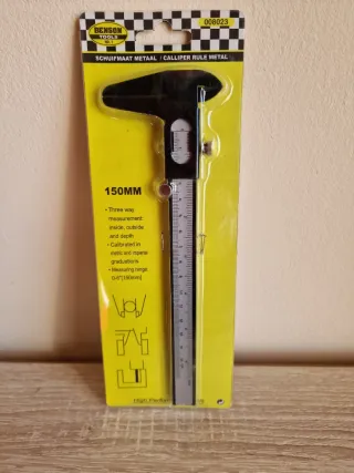 Pie de rey Benson de metal con una longitud de 150mm. - Calibrado en graduaciones métricas e imperiales. - Rango de medición: 0-6 (150mm). - Permite mediciones interiores, exteriores y de profundidad.