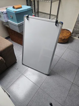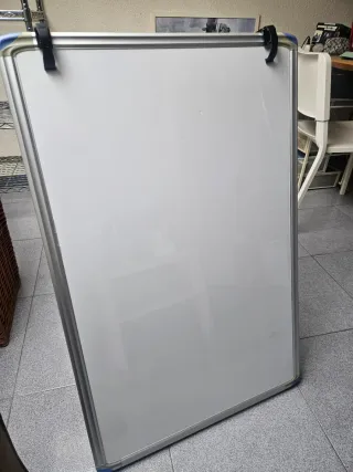 Pizarra magnética con marco de aluminio. - Superficie blanca. - Ideal para presentaciones o notas.