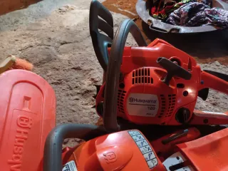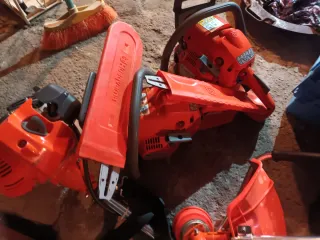 Se venden dos motosierras y una desbrozadora. - Motosierras de color naranja. - Desbrozadora con protector naranja.
