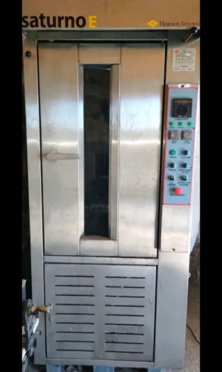 Horno industrial de gas natural, ideal para panaderías o negocios de hostelería. - Fabricado en acero inoxidable. - Puerta con ventana para visualización. - Panel de control con termostato y temporizador. - Función de vapor y extracción de humos.