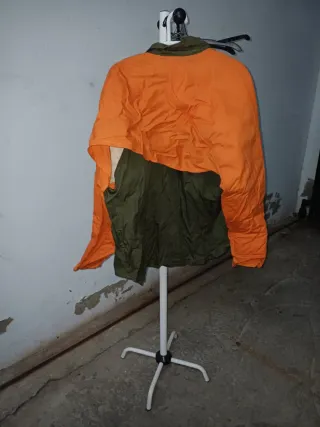 Chaqueta de protección anticorte en color naranja y verde. Diseñada para ofrecer seguridad. - Mangas y cuerpo en naranja. - Paneles y bolsillos en verde. - Cierre frontal.