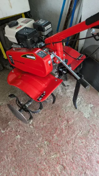 Motoazada con motor Honda GX160. - Modelo RL7. - Marca Meccanica Benassi. Funciona perfectamente. Arranca a la primera. Ancho de la azada 80cm. La última aspa de cada lado se puede desmontar y queda en 60cm. 2 marchas delanteras y marcha trasera. Manillar plegable. Incluye caja con herramientas. Falta la rueda delantera que no afecta para su uso y el botón de apagado (se apaga dando contacto del conector). Adjunto fotos. Consultar si tienes dudas