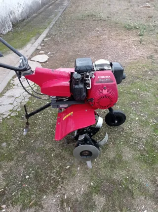Motoazada / Máquina escarificadora con motor Honda – 350 € Se vende motoazada (máquina para escarvar/tierra) en buen estado, ideal para huertos, jardines y terrenos pequeños/medianos. ✅ Motor Honda GX160 (5.5 CV) – muy fiable y potente ✅ Arranca bien y funciona correctamente ✅ Fresas completas y en buen estado ✅ Incluye rueda delantera para fácil transporte ✅ Perfecta para preparar la tierra, huertos o mantenimiento de parcelas 🔧 Máquina usada con desgaste normal, pero lista para trabajar. 💰 Precio: 350 € (algo negociable)