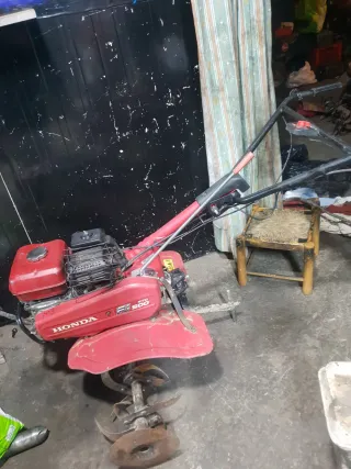 * Motocultor de gasolina Honda de 3,8 CV. * Lleva aproximadamente 5 años parado y sin uso. * Incluye varios accesorios, entre ellos dos fresas adicionales que pueden acoplarse para aumentar la longitud de las aspas. * Antes de dejar de utilizarse funcionaba perfectamente. Al llevar tiempo parado, no se garantiza su estado actual, aunque la persona interesada puede intentar arrancarlo en el momento de la recogida. * Posibilidad de enviar más fotos si se solicitan. * No se realizan envíos ni desplazamientos. El producto debe recogerse en Vallirana. * El pago se comenta por privado