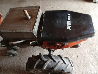 Originalmente segadora pero se monto al reves como un nitocultor.Es de gasolina en buen estado, ideal para trabajos agrícolas a pequeña escala. Es un modelo antiguo pero en general bien conservado. Es pequeño, se cambiaria por motocultor diese algo mas grande aportando diferencia si fuera necesario. No tiene ningun apero. - Motor de gasolina. - Ruedas robustas. - Manillar para un manejo cómodo.