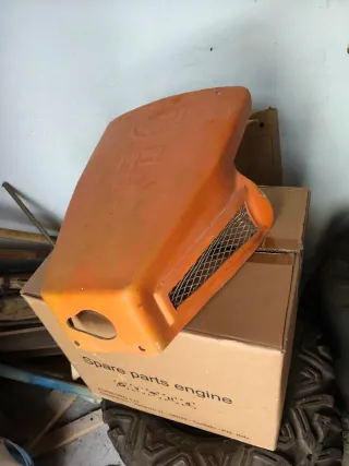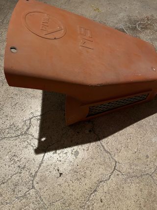 Tapa de capó para motocultor Piva M9. Pieza de repuesto. Tengo 2 unidades una de fibra y otra de metal - Color naranja. - Con rejilla de ventilación. - Fabricada en plástico resistente.