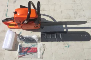 Motosierra de gasolina de gran tamaño, ideal para trabajos exigentes. Incluye varios accesorios para su mantenimiento y uso. - Motosierra de gasolina 2T - Barra de corte. - Cadena - Protector de barra. - Botella para mezcla. - Kit de herramientas. Venta entre particulares mediante wallapop. No me hago cargo del uso que se le haya dado una vez realizada la compra.