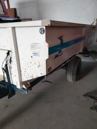Remolque Agrícola basculaste Servicio a que se destina: Agrícola Masa máxima autorizada : 8500 Tara: 1.500 Anchura máxima: 2.050 Longitud total: 4.600 La caja 3,40m. y más la lanza 1,20m. Apto para circular de noche Freno de servicio Hidráulico Buen estado. Incluye lona, en caso de que su uso sea la vendimia.