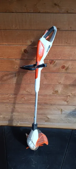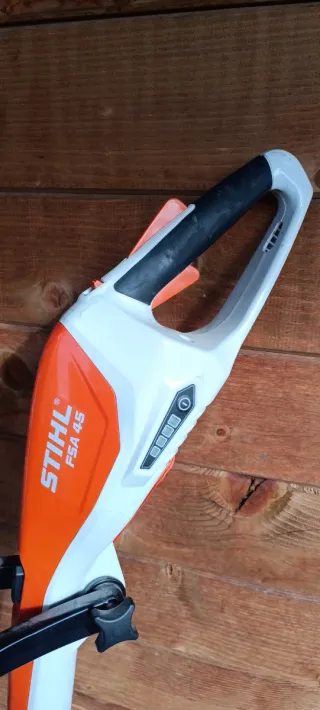 Desbrozadora a batería Stihl FSA 45. Es ligera y fácil de manejar montada con policut - Mango ergonómico y telescópico. - Protector de flores.