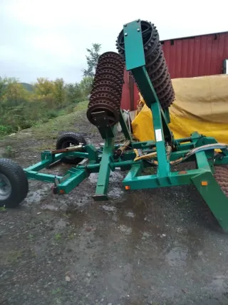 Rodillo de labranza de la marca REVILLA. Diseñado para trabajar la tierra. - Estructura metálica resistente. - Rodillos con discos dentados. - Enganche para tractor.