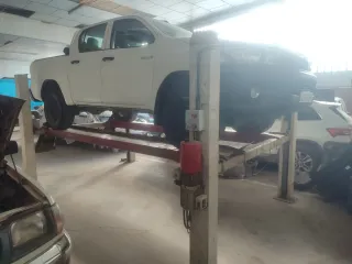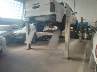 Elevador de cuatro columnas con capacidad de 4000 kg. - Ideal para talleres mecánicos. - Estructura robusta de acero.