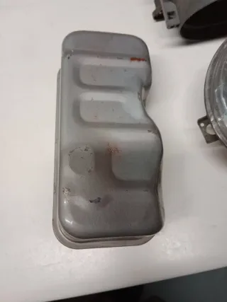 Se vende depósito y focos de Lote. El artículo es de metal y tiene un acabado grisáceo. - Depósito rectangular con tapa. - Dos focos circulares en la parte superior.