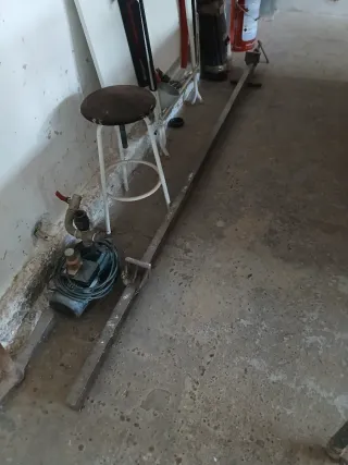 Bomba de agua para riego, diseñada para acoplar a minitractor pascuali kubota o del estilo - Estructura metálica robusta. - Componentes de la bomba en color verde y gris. - Soporte de montaje azul.