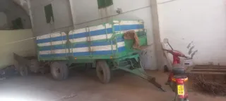 Se vende remolque agrícola con estructura verde y laterales en color amarillo. - Ruedas de goma. - Cadena de seguridad.