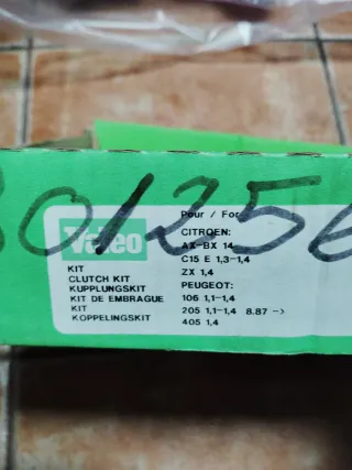 Kit de embrague Valeo, referencia 801256, compatible con vehículos Peugeot y Citroen. Incluye plato de presión y disco de embrague. Producto nuevo procedente de cierre de tienda de recambios. Peugeot 106 I y II 1.1 y 1.4, 205 II .1 y 1.4, 306, 309, 405 I y II, 306, 206... Citroen ZX, AX, C15, Saxo 1.4 VTS, Xsara. - Plato de presión. - Disco de embrague. - Cojinete de empuje.