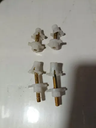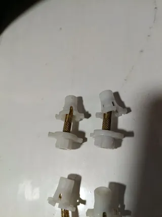 Kit de reparación para faros delanteros de VW Golf MK2. Incluye los elementos necesarios para la fijación. 4 piezas. - Material: Plástico y metal. - Color: Blanco y dorado.