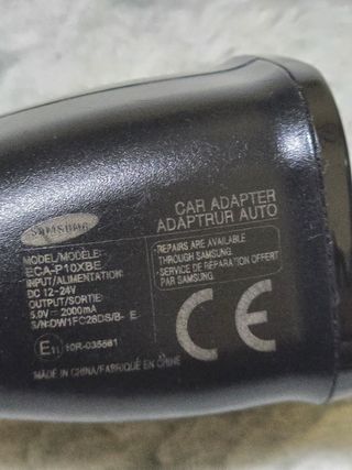 Cargador de coche Samsung ECG-P10XBE en buen estado. Conexión de salida usb tipo A - Modelo: ECA-P10XBE - Entrada: 12-24V - Salida: 5.0V 2000ma