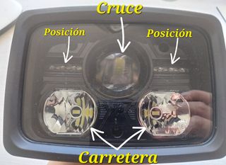 93 €/ud. homologados, ideales para tractores, cosechadoras, - Incluyen luces de posición cruce y carretera. - Homologados para uso legal. Homologado, 2 fijaciones,"colgada" y vertical. Rectangular 160x113 mm. Base regulable y orientable. Sin interferencias.IP68. Carcasa de aluminio fundido de color negro. 96w y 7680 lumenes efectivos. Color blanco frio 6000K. 12-24v. Conector H4. Cruce 30w y carretera 60w + 2 luces de posición (cable rojo). Cable de 14 cmtrs. Disipador de calor. CE. R112.R148.R149 Apta para tractores, cosechadoras, vehículos de obras y servicios y demás vehículos que posean anclaje externo