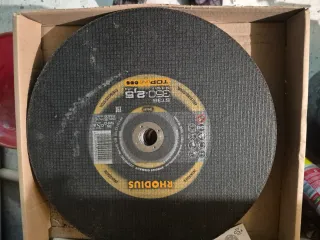 11Discos de corte para acero inoxidable y metal. - Marca: RHODIUS - Modelo: ST38 - Diámetro: 350 mm - Grosor: 2,5 mm - Eje: 25,4 mm - Velocidad máxima: 4400 rpm / 80 m/s - Uso: Inox/Acero A 5,00€ la unidad