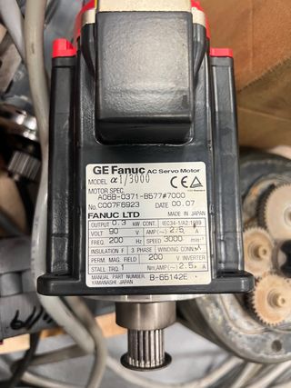 Motor servo AC GE Fanuc modelo Alpha 1/3000. - Modelo: α 1/3000 - Especificaciones del motor: A06B-0371-B577#7000 - Número de serie: C007F6923 - Fabricado por FANUC LTD, Made in Japan - Potencia: 0.3 kW - Voltaje: 90 V - Frecuencia: 200 Hz - Velocidad: 3000 min-1 - Campo magnético permanente: 200 V INVERTER - Par de bloqueo: 1 Nm - Número de parte manual: B-65142E varias unidades!