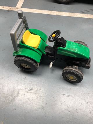 Tractor de juguete en perfecto estado, ideal para coleccionistas o para jugar. - Color amarillo y verde. - Pala frontal roja. - Ruedas negras. - Apenas usado, se puede comprobar por el desgaste en las ruedas, están nuevas