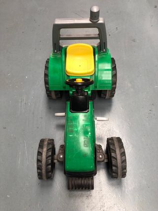 Tractor de juguete de color verde, ideal para que los más pequeños disfruten. - Diseño de tres ruedas, va a pedales - Asiento amarillo. - Volante negro y amarillo. - Ruedas de plastico duro