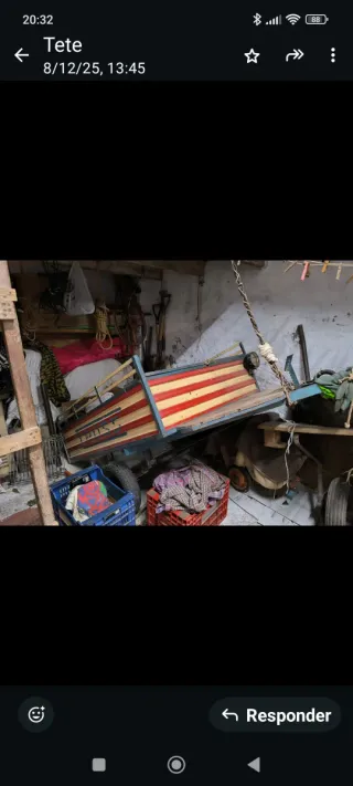 No pasa revisión. 1 sola matrícula. Cambiado la chapa por madera de barco y los ejes de 700 a 1000 (los dos)Tiene dos montureras... Las ruedas cambiadas. Forrado con goma interior para que no resbalen los caballos. Fotos viejas...