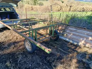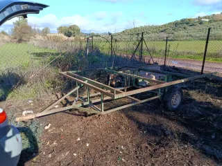 Estructura remolque tipo batea, ideal para transportar cargas o hacer una carreta para la romería. - Estructura metálica . - Enganche para vehículo. - No tien documentación ni pilotos. - Enganche bola. - Dimensiones: 2 x 3 metros