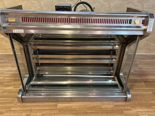 Vitrina expositora de acero inoxidable, ideal para negocios como restaurantes, bares o tiendas. - Diseño moderno y funcional. - Estructura de acero inoxidable. - Puertas de cristal. - Iluminación interior. -Ancho 1,50 - Alto 1,45