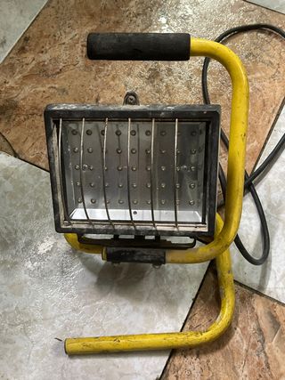 Foco de trabajo con tecnología LED y estructura metálica amarilla. - Mango de agarre negro. - Rejilla protectora frontal.