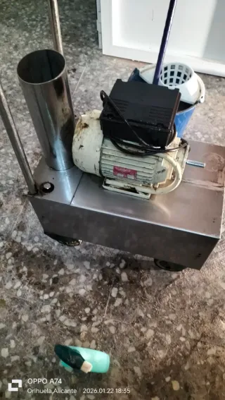 Se vende lote completo de equipos de refrigeración industrial usados. 🔹 Compresor frigorífico industrial con condensador de aire y doble ventilador. 🔹 Enfriador de agua (chiller) con control digital y salida para instalación. 🔹 Depósito de acumulación de agua de gran capacidad (aprox. 1.500-2.000 L). 👉 Todo el conjunto se usaba para un sistema de refrigeración de agua en una instalación industrial. 📦 Estado: usados, con signos de óxido y polvo, llevan tiempo parados. Se venden como lote, sin garantía, para puesta a punto o repuestos. 💶 Precio del lote completo: 950 € (negociable).