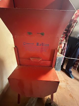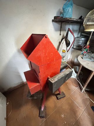 Máquina desgranadora de maíz de color rojo. - Estructura metálica. - Tolva superior. - Muy poco uso.