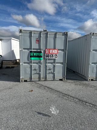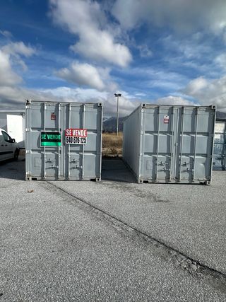 Contenedor marítimo de color gris, ideal para almacenamiento o transporte. - Estructura metálica robusta. - Puertas de doble hoja con cierres de seguridad.
