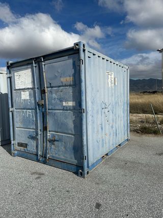 Contenedor marítimo de color azul, ideal para almacenamiento o transporte. - Puertas dobles con cierres. - Estructura metálica robusta.